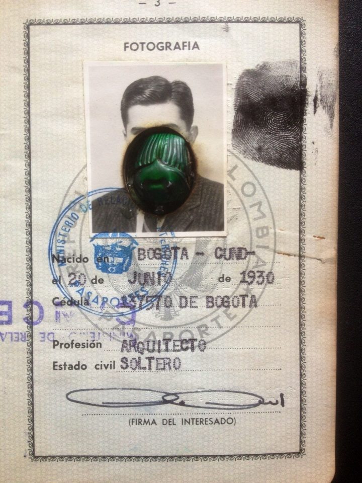 Es aquí donde todos esos coleópteros bien podríamos ser nosotros, metamorfoseados, devorando nuestra política hecha excrementos como el video “Politiké” (2007-2013) en el que muchos de estos escarabajos están comiéndose esta palabra hecha en mierda, o como devoradores de los medios como el video “Dieta” en el cual los cucarrones en ayuno, se devoran los periódicos y las sonrisas de distinguidos personajes de la política mundial. Y la referencia es directa en la escultura, “A manteles. Bitácora de vuelo” (2013) en donde como el mejor de los coleópteros voladores, varios sujetos representados en sus pasaportes han sido intervenidos con estos escarabajos peloteros cuya figura ha sido insertada sobre los rostros de los otrora humanos. Dos cofres en terciopelo rojo que se arremolinan al contacto con los escarabajos verdes que llenan la forma de una copa sagrada completa la pieza, uno de estos cofres está metido en una urna acrílica que con la iluminación, representa a su vez un juego de la ilusión que deforma su interior.