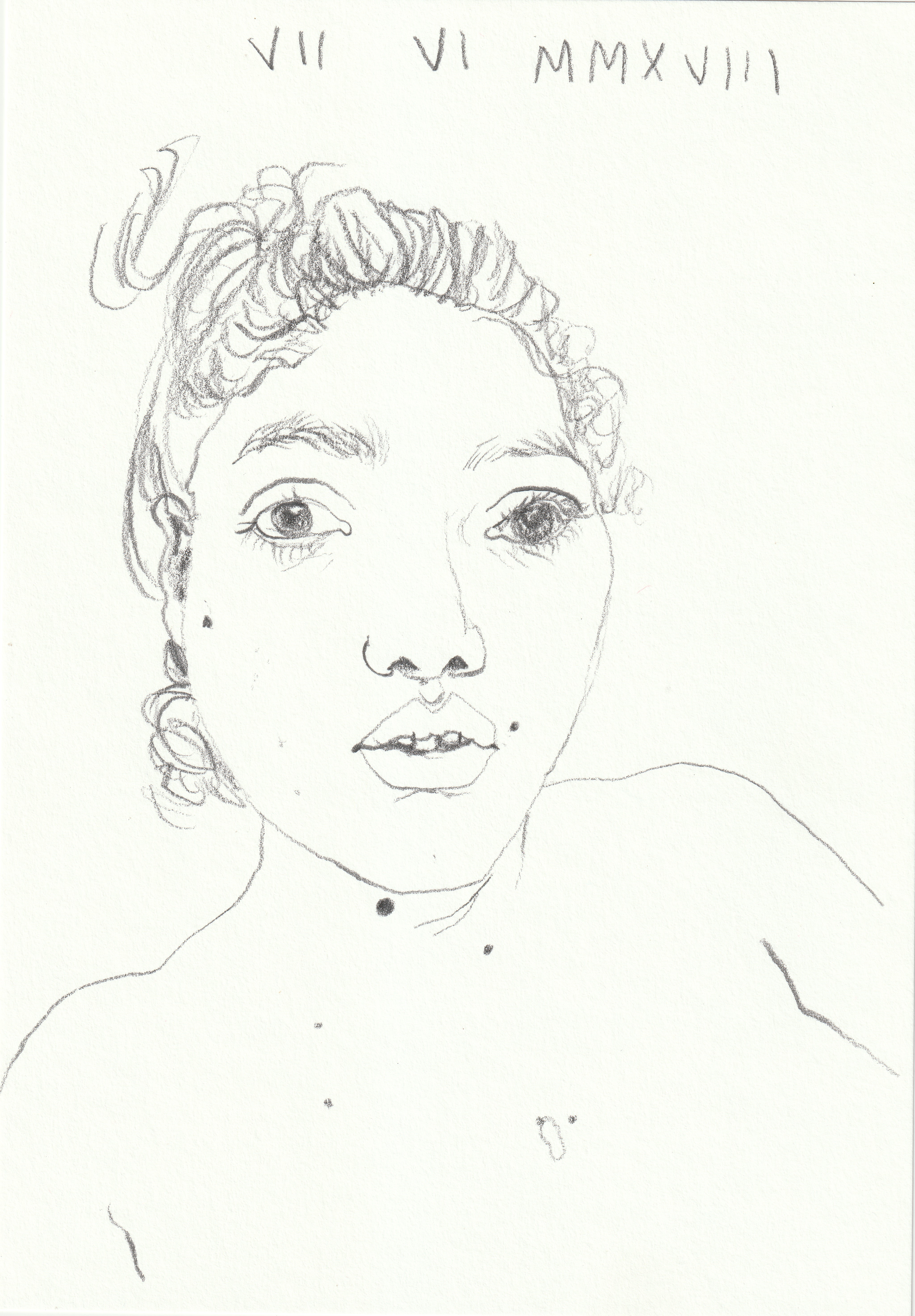 La acción consta de un dibujo de ella y por ella, realizado diariamente sobre papel Durex, mirándose en el mismo espejo cada uno de los días, sin borrar ni editar nada, y firmando con la fecha en números romanos en el extremo de la hoja.
