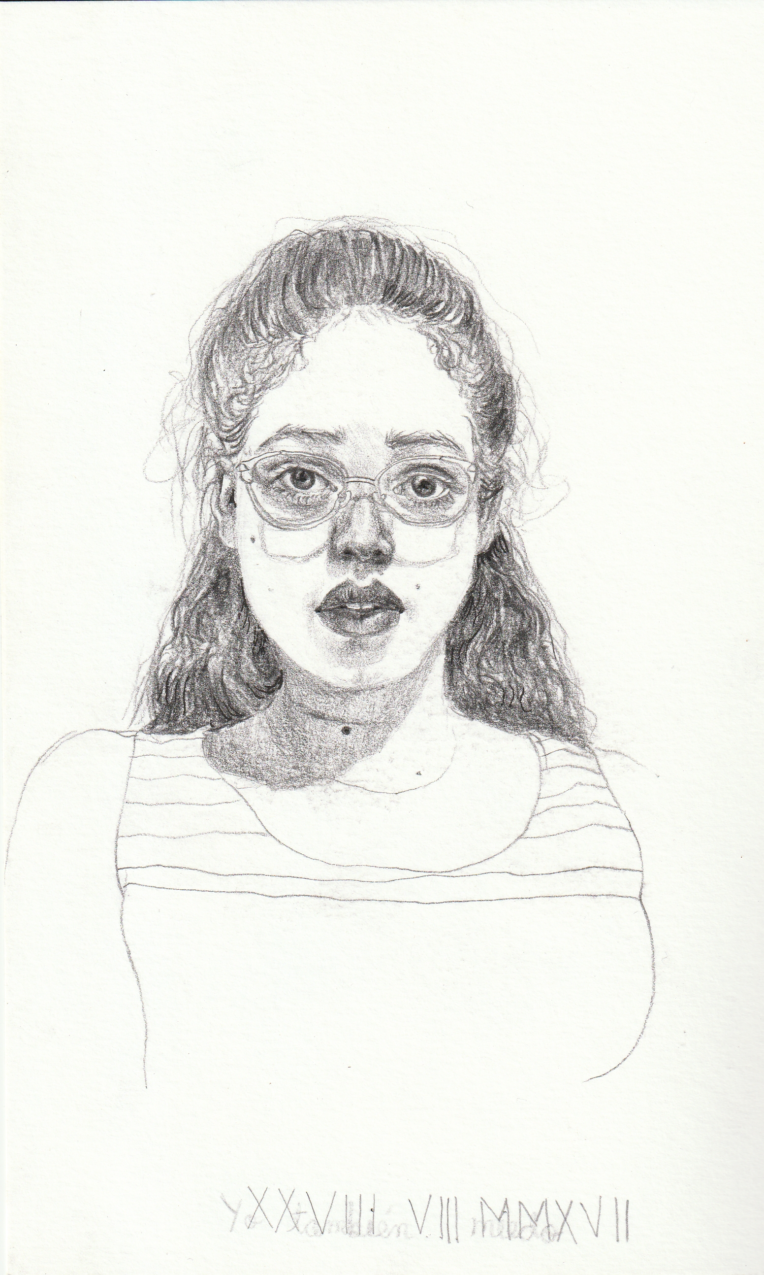 La obra DIARIO, es la consecuencia de su autorretrato como ejercicio para plasmar la imagen que la representa, en donde cada trazo que forma la proyección de sí misma -que cada día es distinta- deja entrever las experiencias de su vida. La deformidad que enmarca la obra, prefigura no sólo el concepto de perspectiva sino también de constante devenir en el que todo se encuentra.