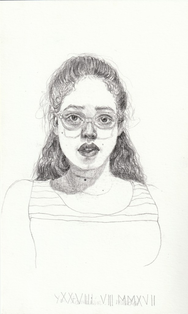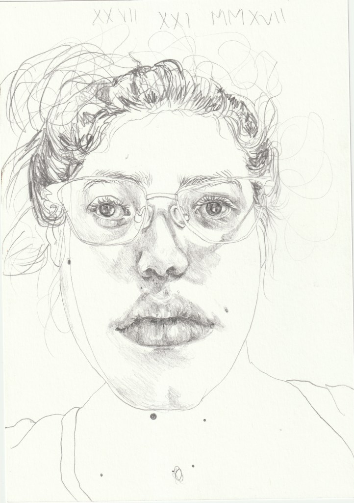 Un día a la vez, un dibujo a la vez. La pregunta por la identidad toma en la obra de Alma Brutau, “Diario”, la dimensión de la multiplicidad en la repetición, de la transformación en la acción. A través de un dibujo diario realizado desde el 28 agosto de 2017, Brutau indaga por sí misma en cada trazo, en cada forma con la que lleva a cabo su intención. Cada parte del proceso es en sí un rito cargado con la mística de la constancia, del hacer una imagen de sí misma que no se agota cuando se coloca una fecha, sino que cierra una manera de verse en un instante que ha sido el resultado de una vida, de una existencia, de una jornada. En cada dibujo hay en consideración diferentes situaciones, el mismo espejo, aquel que la artista María José Arjona le entregó como parte de un taller; el papel, el material con el que se hace, la vinculación del sentimiento, la emoción, la técnica, el estilo, el concepto… Se trata de pensarse a la vez que se piensa, ¿qué es el dibujo? ¿qué significa dibujar? ¿cómo se domina el dibujo?