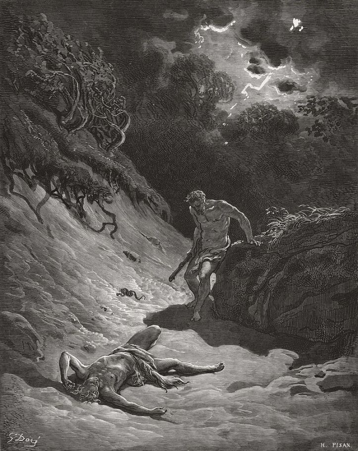 Después de la creación del mundo, Adán y Eva se encuentran habitando el jardín del Edén, y por culpa de la tentación causada por una serpiente (Lucifer) prueban del fruto del árbol prohibido, lo que causa la ira de Dios, expulsándolos para siempre del paraíso. En este exilio, Eva da a luz a Caín y luego a Abel; el primero se convierte en labrador de la tierra y el segundo en pastor de ovejas. Caín no logra el agrado de Dios, y por envidia, mata a su hermano, obteniendo como condena, el destierro. Antes de hacerlo, recibe una marca para que nadie lo mate, y si así fuese, sería siete veces castigado. Aquí nos llega la primera pregunta ¿Quién mataría a Caín si sólo él y sus padres estarían habitando la tierra? Se puede solucionar pensando que se incluye alguna bestia como un león o un tigre, y que, si cometieran algo en contra del primer hijo de Adán, pagarían las consecuencias como le pasó a la serpiente. Ahora entramos en el agujero de guion que ocurre en el capítulo 4, versículos 16 y 17: