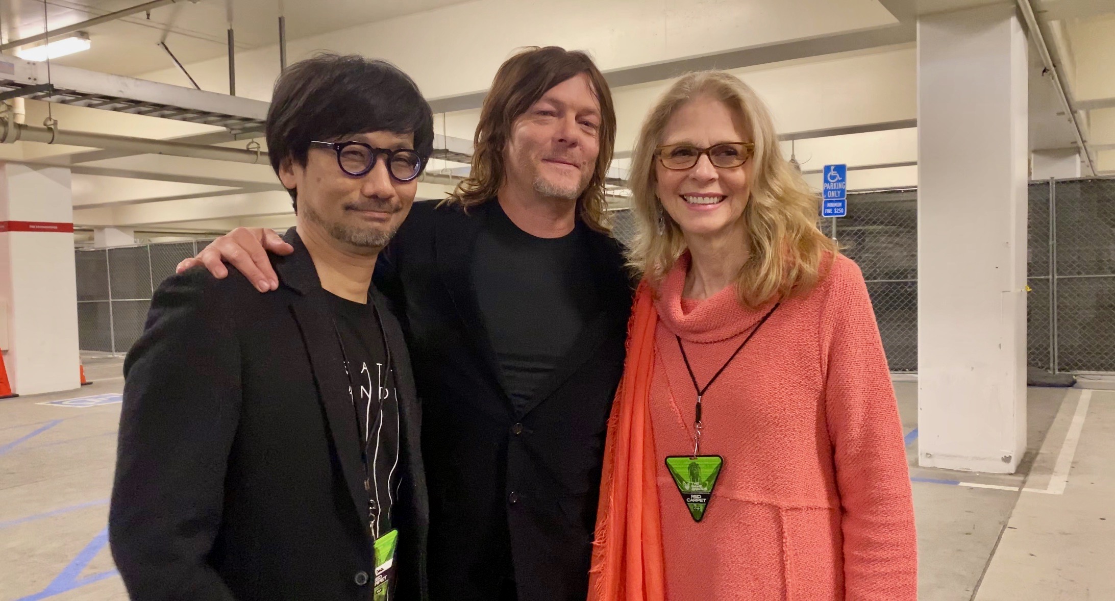 El director de Death Stranding; Hideo Kojima, junto a Lindsay Wagner (La mujer Biónica) y Norman Reedus (The Walking Dead). Foto tomada durante The Game Awards 2019.
