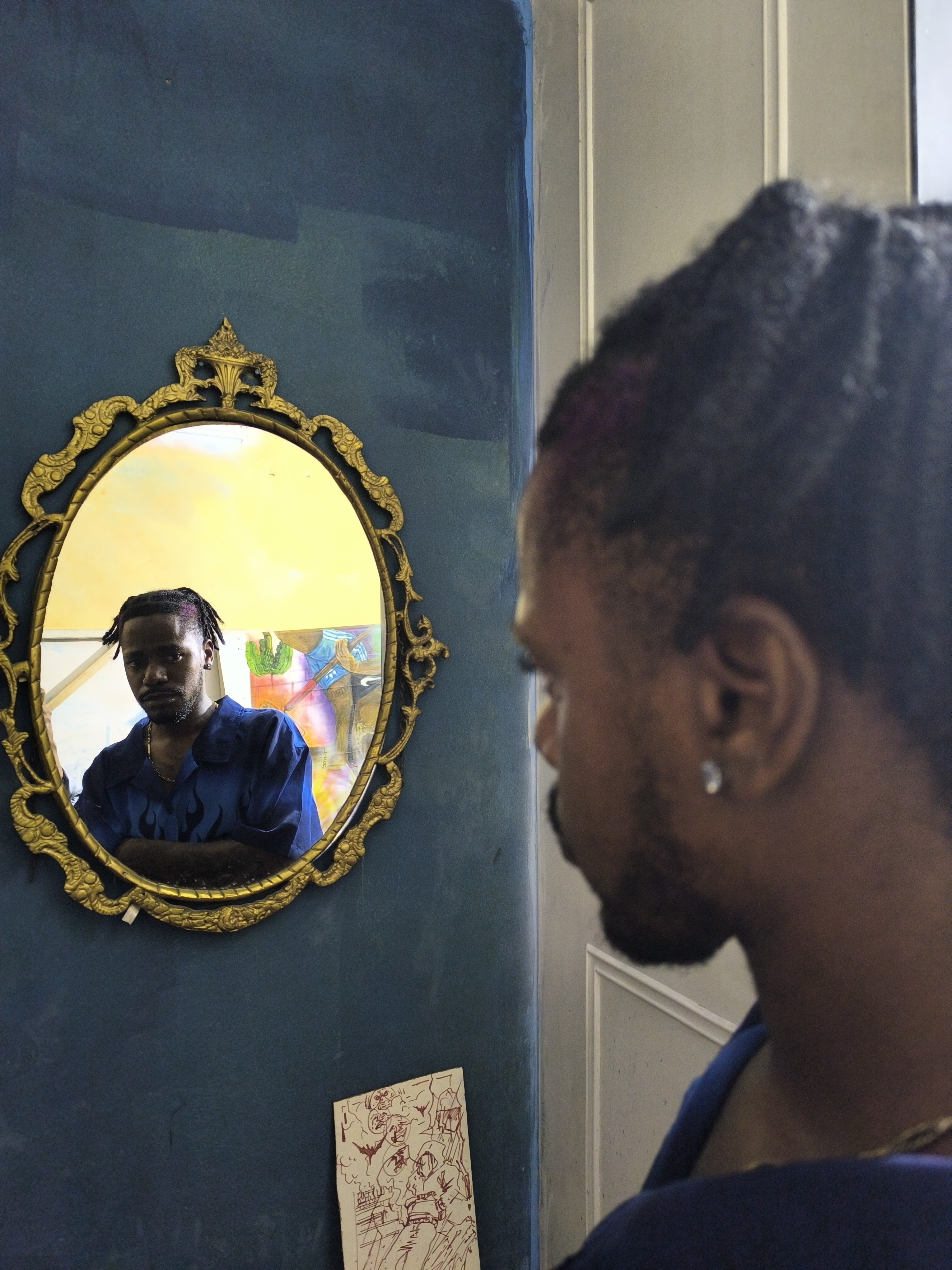 El agenciamiento de su estética, entonces, se vuelve una forma de resistencia. Una manera de reclamar el derecho a ser, a estar, a vestir, a lucir y a ocupar el espacio desde la diferencia. La mirada que propone Cflef en su pintura, desestabiliza el juicio y lo convierte en pregunta: ¿qué hemos aprendido a temer y por qué? ¿Qué historias no nos permitimos escuchar? Pensar el arte desde el barrio no es solo una cuestión estética o temática: es un gesto político, afectivo y territorial. La obra de Cflef no busca redimir al barrio ni romantizar la precariedad; lo que hace es activar otras formas de mirar y contra-narrar, desde lo vivido, desde la experiencia, desde lo cotidiano que resiste.