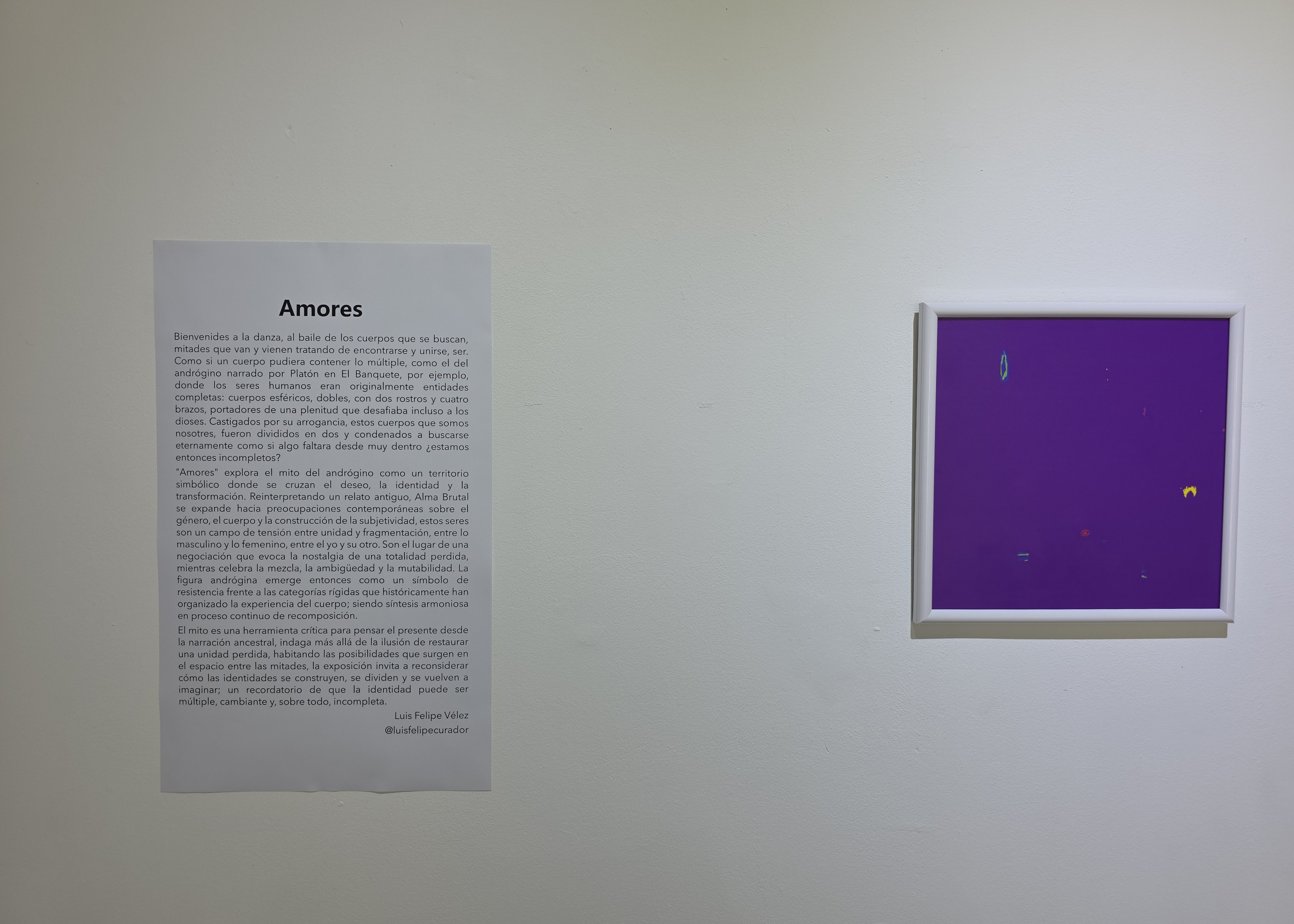 «Amores» explora el mito del andrógino como un territorio simbólico donde se cruzan el deseo, la identidad y la transformación. Reinterpretando un relato antiguo, Alma Brutal se expande hacia preocupaciones contemporáneas sobre el género, el cuerpo y la construcción de la subjetividad, estos seres son un campo de tensión entre unidad y fragmentación, entre lo masculino y lo femenino, entre el yo y su otro. Son el lugar de una negociación que evoca la nostalgia de una totalidad perdida, mientras celebra la mezcla, la ambigüedad y la mutabilidad. La figura andrógina emerge entonces como un símbolo de resistencia frente a las categorías rígidas que históricamente han organizado la experiencia del cuerpo; siendo síntesis armoniosa en proceso continuo de recomposición.
